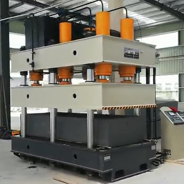 復合材料濾芯板專用1000噸四柱液壓機,是指將SMC復合材料片材在加熱的情況下,通過模具的配合,壓制成所需形狀的產品的液壓機床設備。復合材料成型液壓機一般采用四柱液壓機結構,導軌接觸面更大,糾偏能力更強,精密度更高,復合濾芯板成型效果更好。